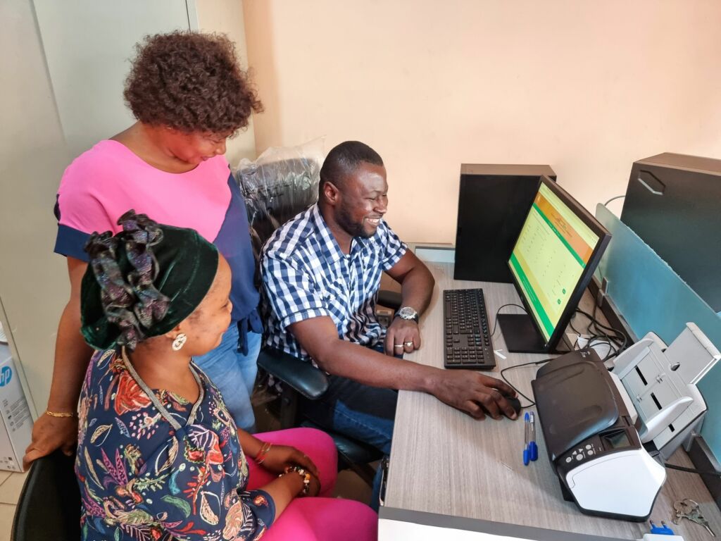 - Premièrement, la création d’un registre national de l’état civil dans les dix communes pilotes sélectionnées. Les actes physiques sont enregistrés au niveau des communes et ensuite reportés dans un système central de base de données. À ce jour, plus de 105 000 actes ont été migrés dans le registre national digital de l’état civil guinéen.