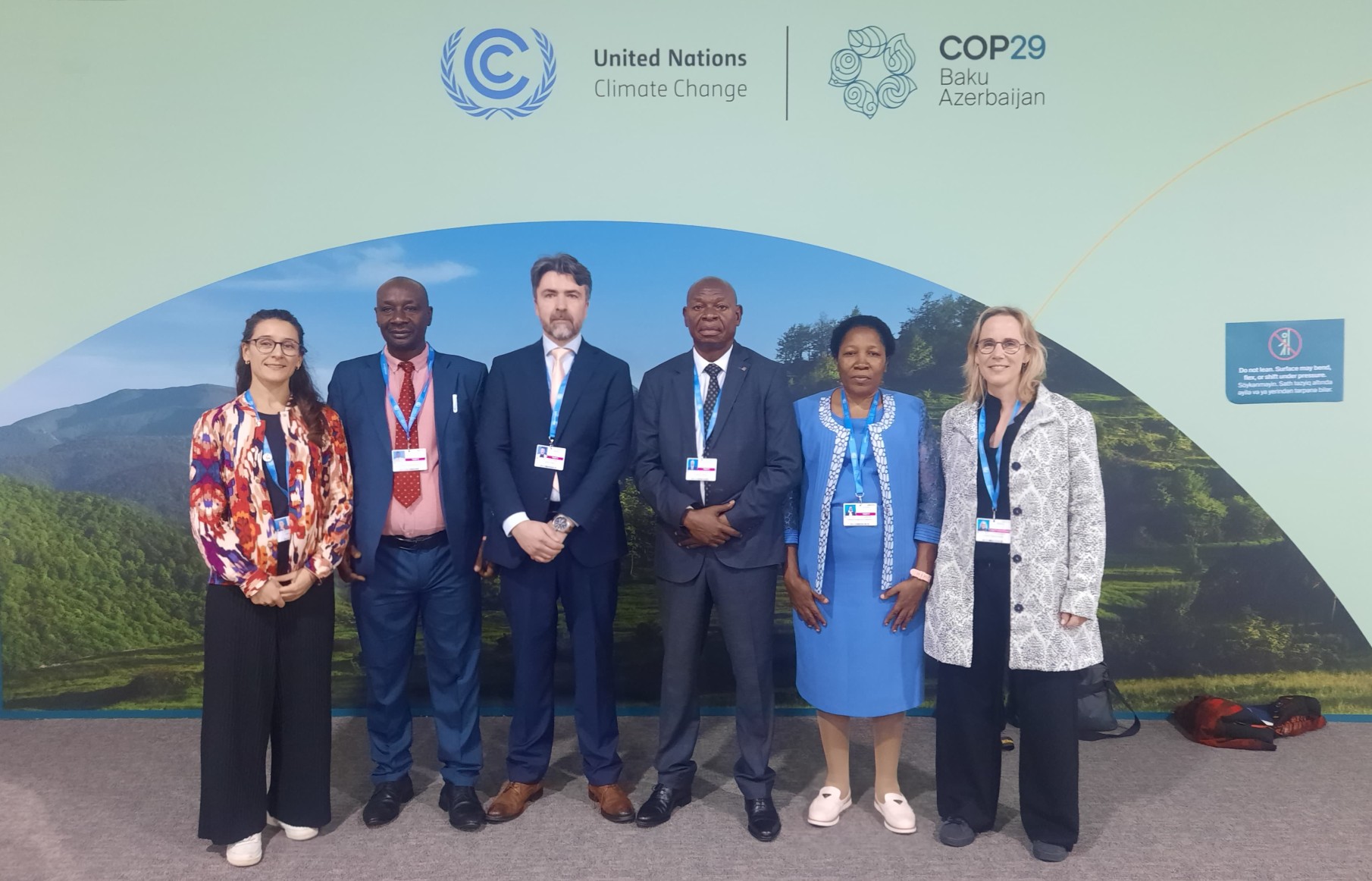 ✱ Foto: Margherita Solca (Global Partnerships Advisor, Enabel), Jérémie Nkinahatemba (Environment Director, Lake Tanganyika Authority), Olivier Parks (Climate Finance Advisor, Air Quality & Climate Agency of the Government of Wallonia), Sylvain Tusanga Mukanga (Executive Director, Lake Tanganyika Authority), Nyakorema Béatrice Marwa (Director of Fisheries, Lake Tanganyika Authority), Evelien Masschelein (Director Expertise & Think, Enabel)